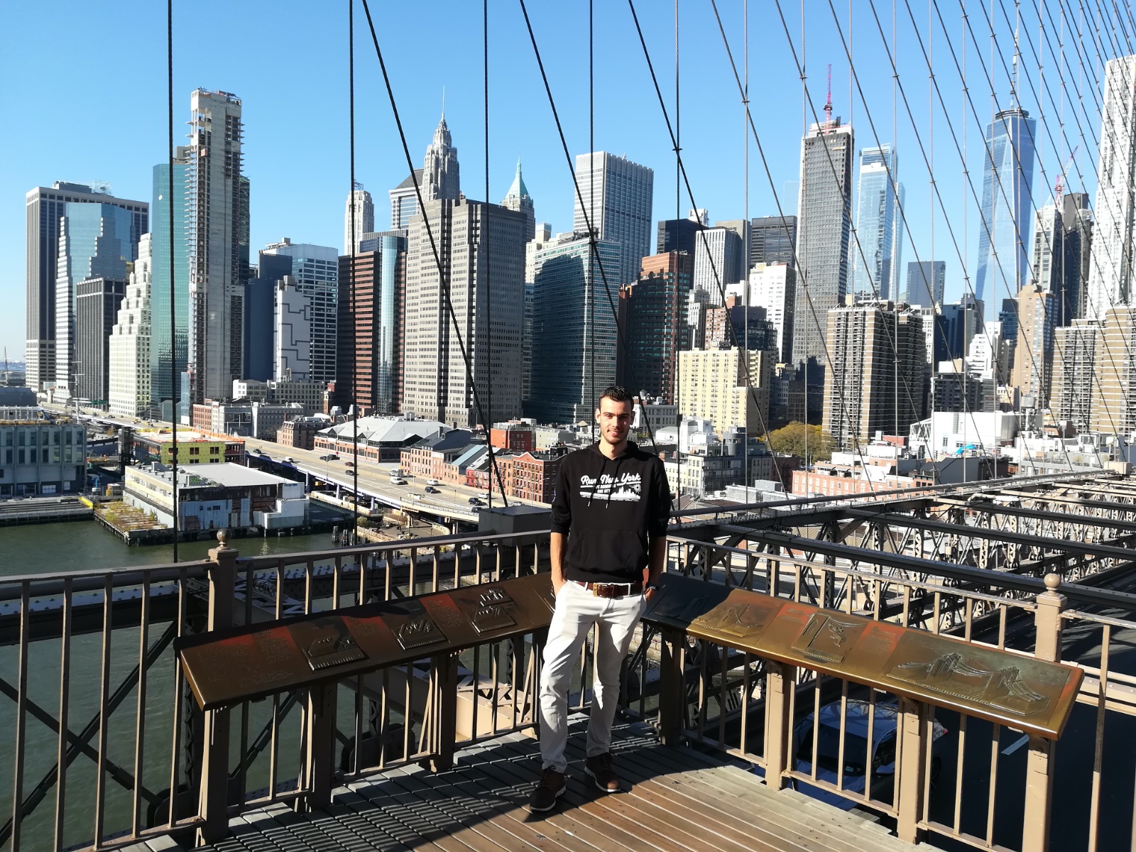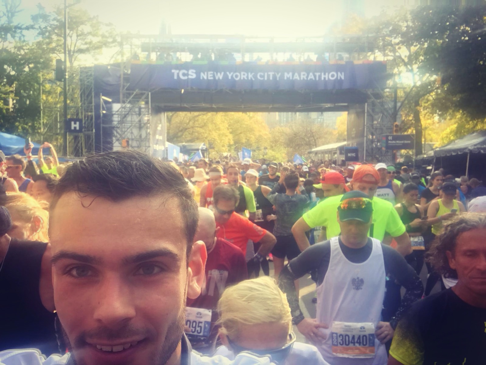 “I DID IT!!! Wat een zenuwslopende, maar fantastische ervaring. Waar ik een week voor de marathon nog overwoog de hele reis naar New York te annuleren, sta ik nu gewoon met een gouden plak om mijn nek! Door een botsing met een wc-deur liep ik een week voor de marathon geïrriteerd kraakbeen op in mijn knie, hoeveel pech kun je hebben… Na toch besloten te hebben af te reizen naar New York heb ik niet meer hardgelopen en was het dus een grote gok om zondag toch aan de start van de marathon te verschijnen. Ik hield er rekening mee na 6 km al uit te moeten stappen, maar gelukkig heb ik gewoon de finish gehaald, zelfs nog onder de 4 uur! Blijkbaar is de combinatie van pijnstillers, wilskracht en de extreme support van het Amerikaanse publiek een succesformule geweest die mij over de finish geholpen heeft. En wat was het een fantastische loop met wereldwijd het grootste deelnemersveld, 133 verschillende nationaliteiten, de kennismaking met de vijf iconische wijken van New York City, bruggen die je niet eens op zou willen fietsen, eindeloos veel heuvels in het parcours en een finish in Central Park die je kippenvel geeft.